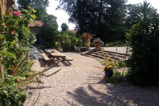 View from our garage to Gite Madres on left, our house on right